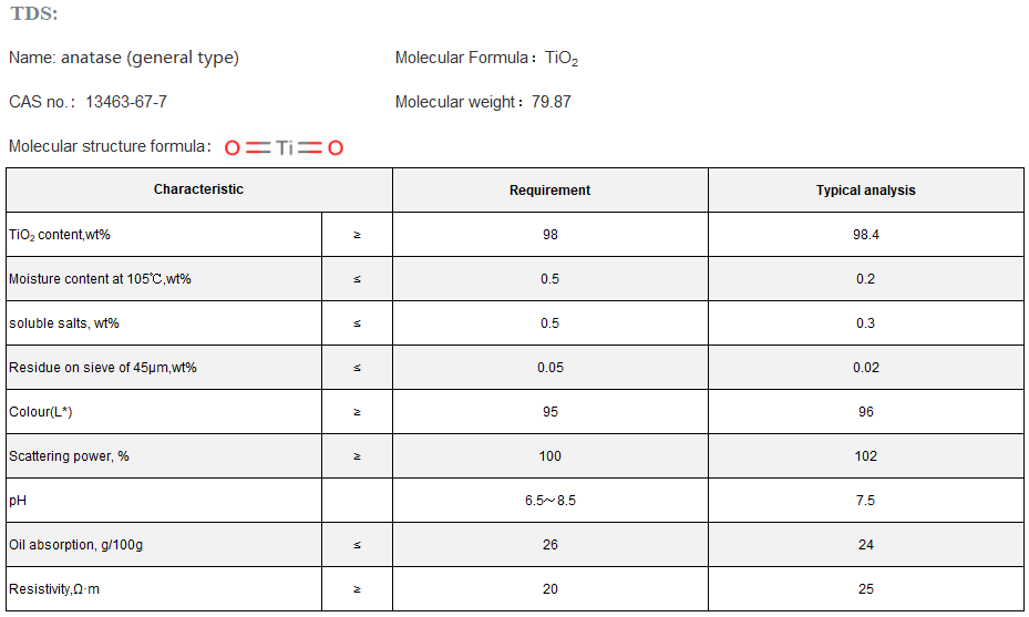 High purity, excellent pigment performance, strong covering power, high lightening power, good whiteness.
